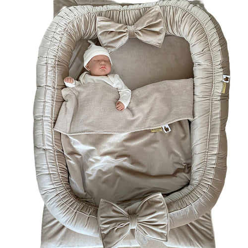 Babynestje Tweeling Velvet luxury zand champagne strik