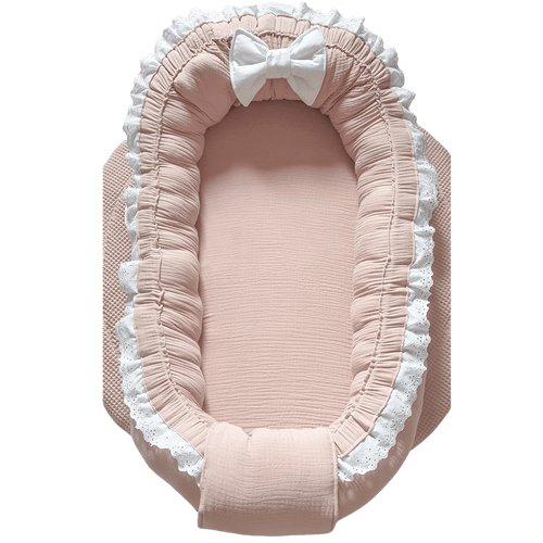 Babynestje Chanty zalm broderie strik landelijk hydrofiel